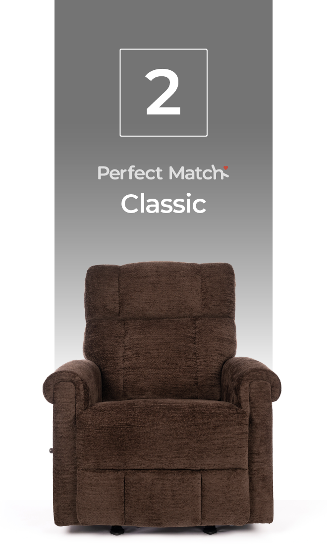 With a timeless design and available in two performance fabric choices, the Classic includes a power headrest and power lumbar for maximum comfort.