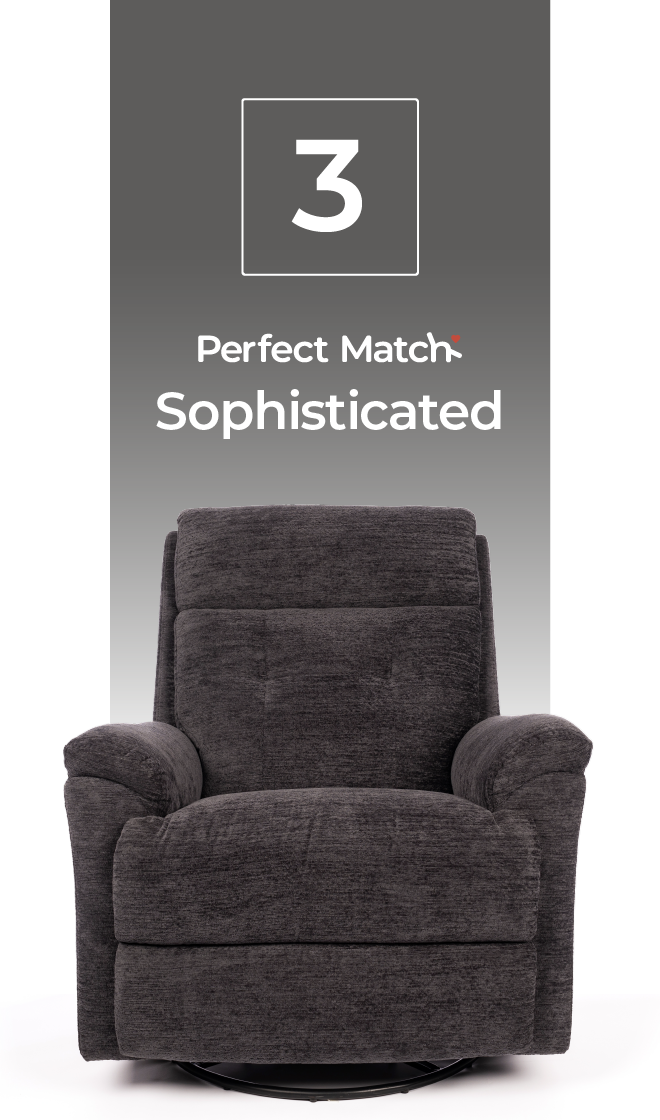 The Sophisticated boasts a rocker feature and a power headrest and power lumbar, combining elegance with functionality.