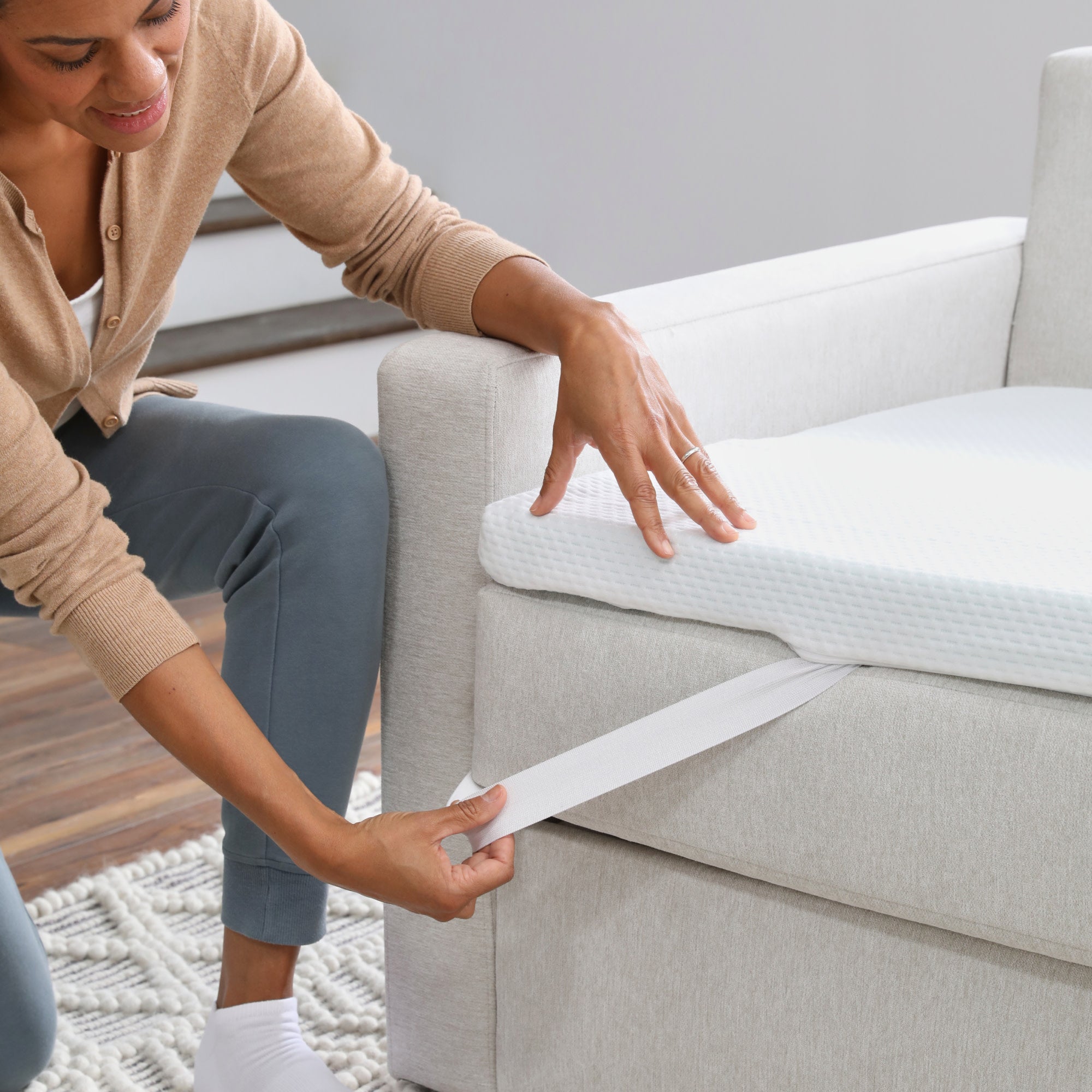 - Cool comfort memory foam topper comes in a bamboo fiber cover with corner straps that secure it to Flex seat cushions