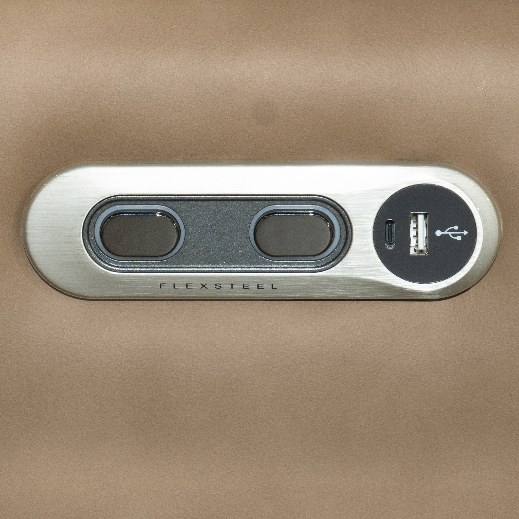 - Power control is located inside the arm for a clean, finished look on the outside and includes convenient USB-A and USB-C ports for charging your devices